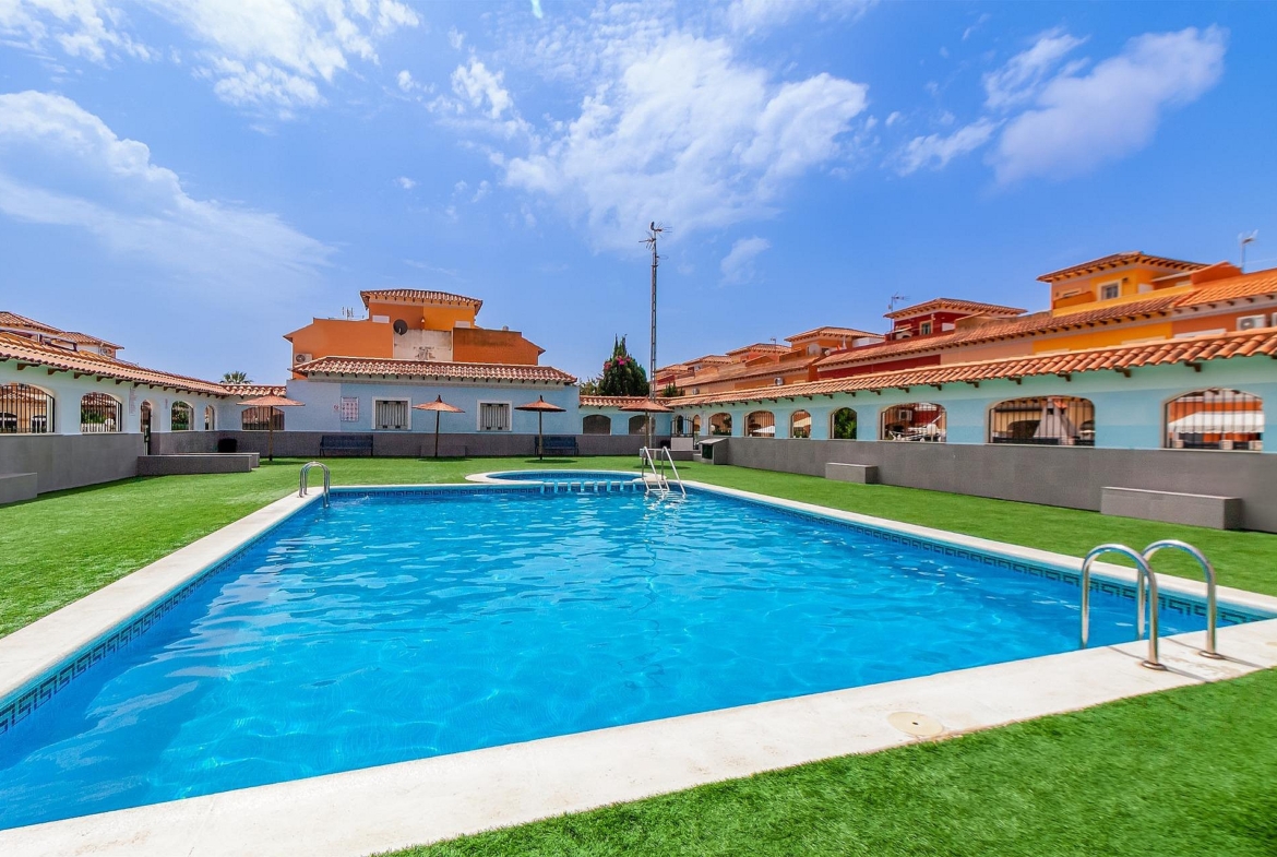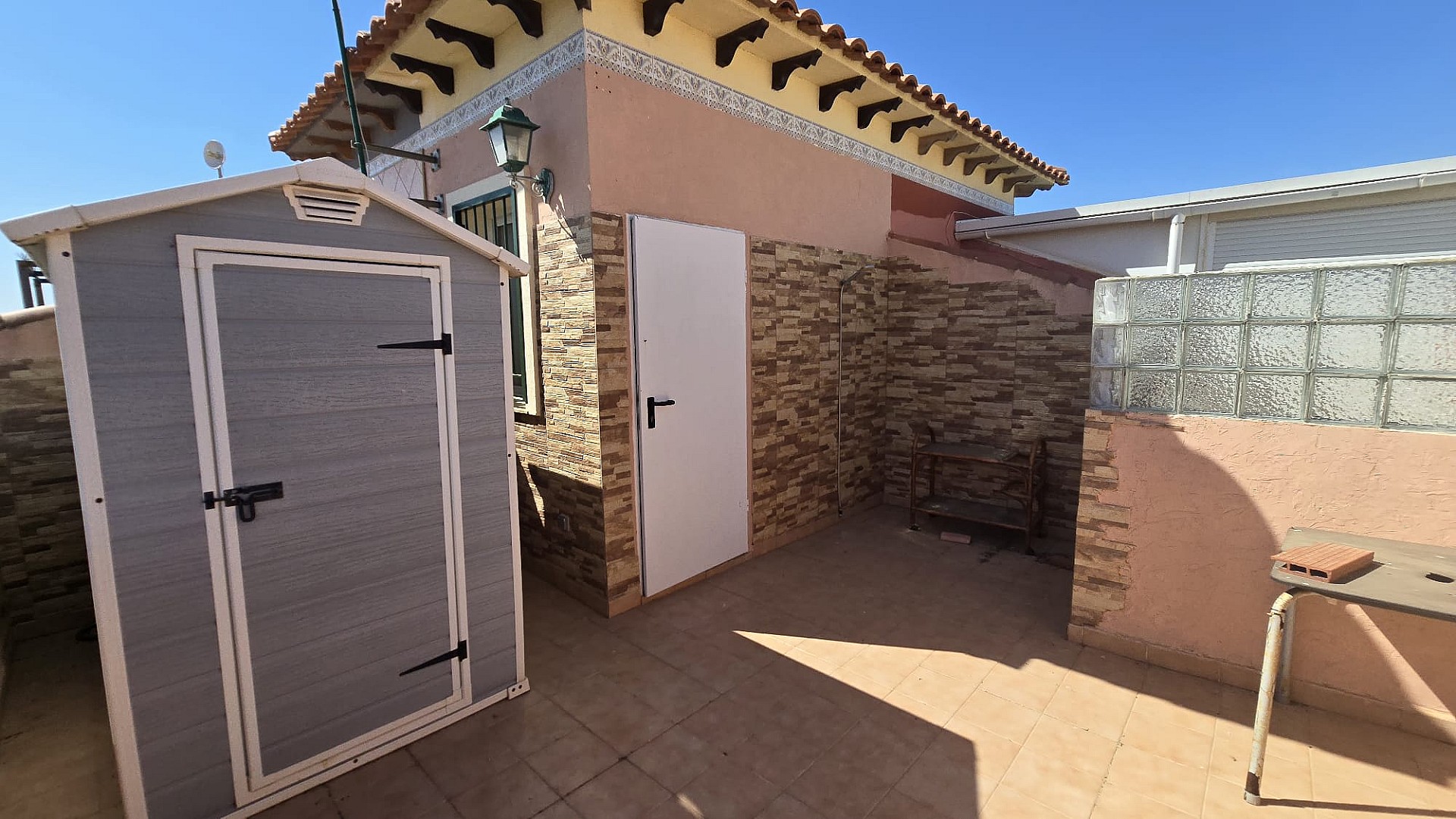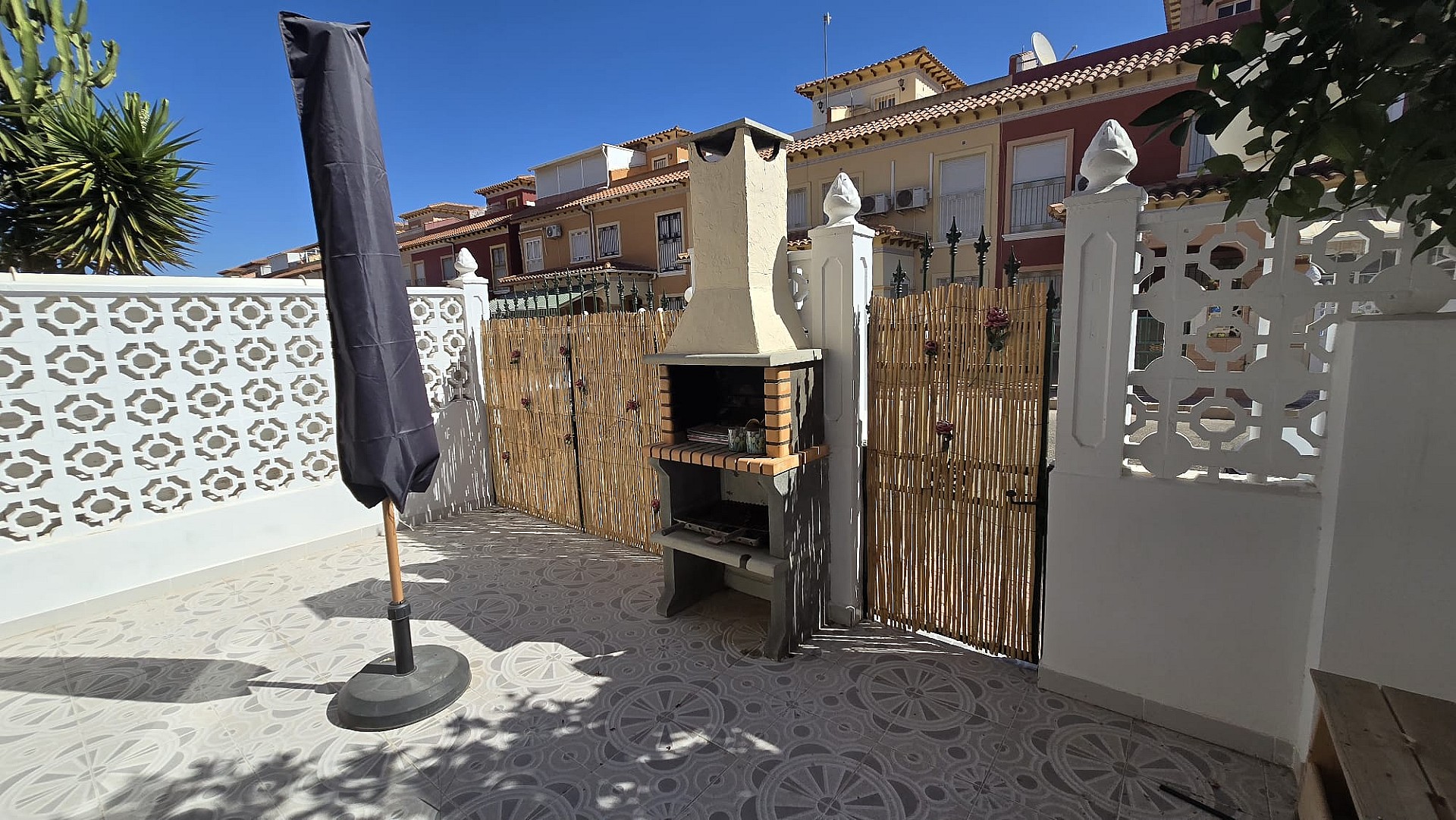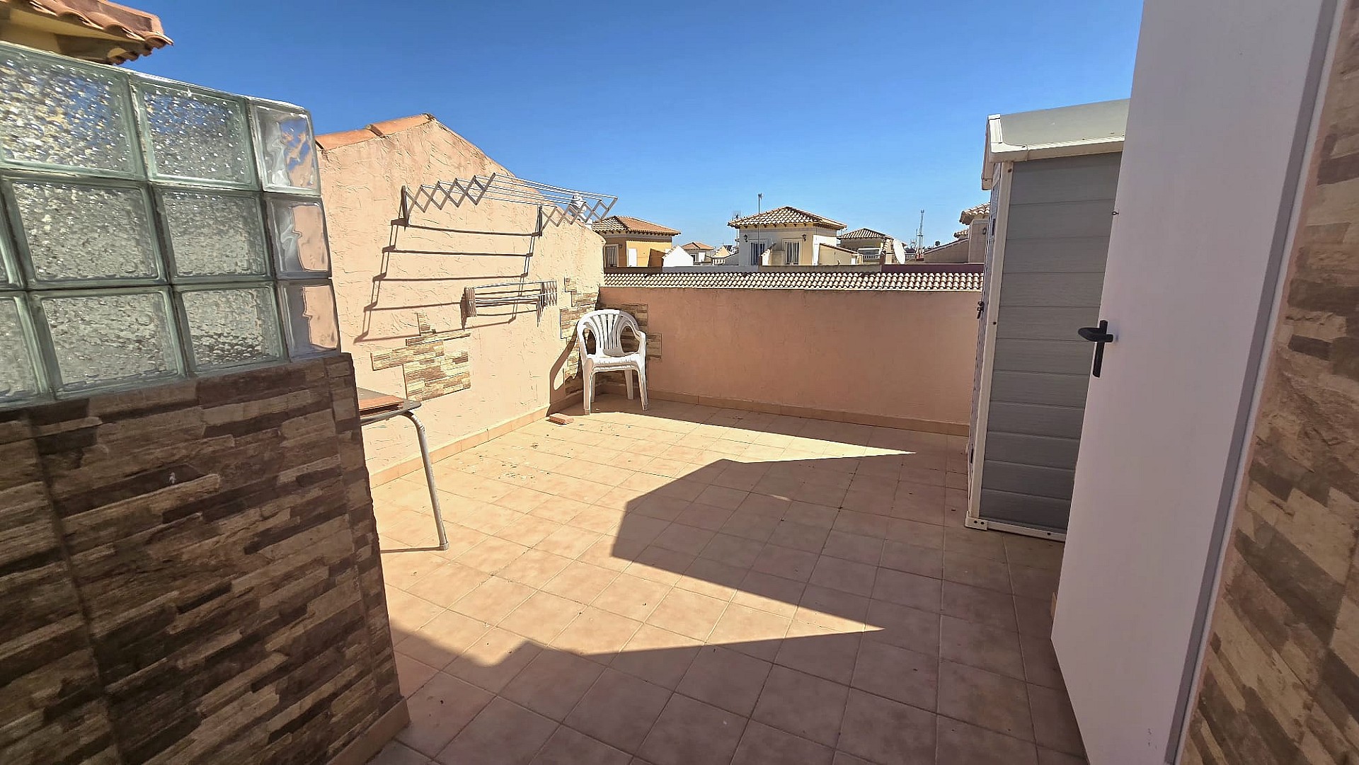 In a quiet residential area of Torrevieja, surrounded by greenery and just a short distance from the beach, you will find this bright and well-maintained two-storey terraced house with a spacious rooftop terrace. Perfect for permanent living, as a holiday home, or for rental purposes.
